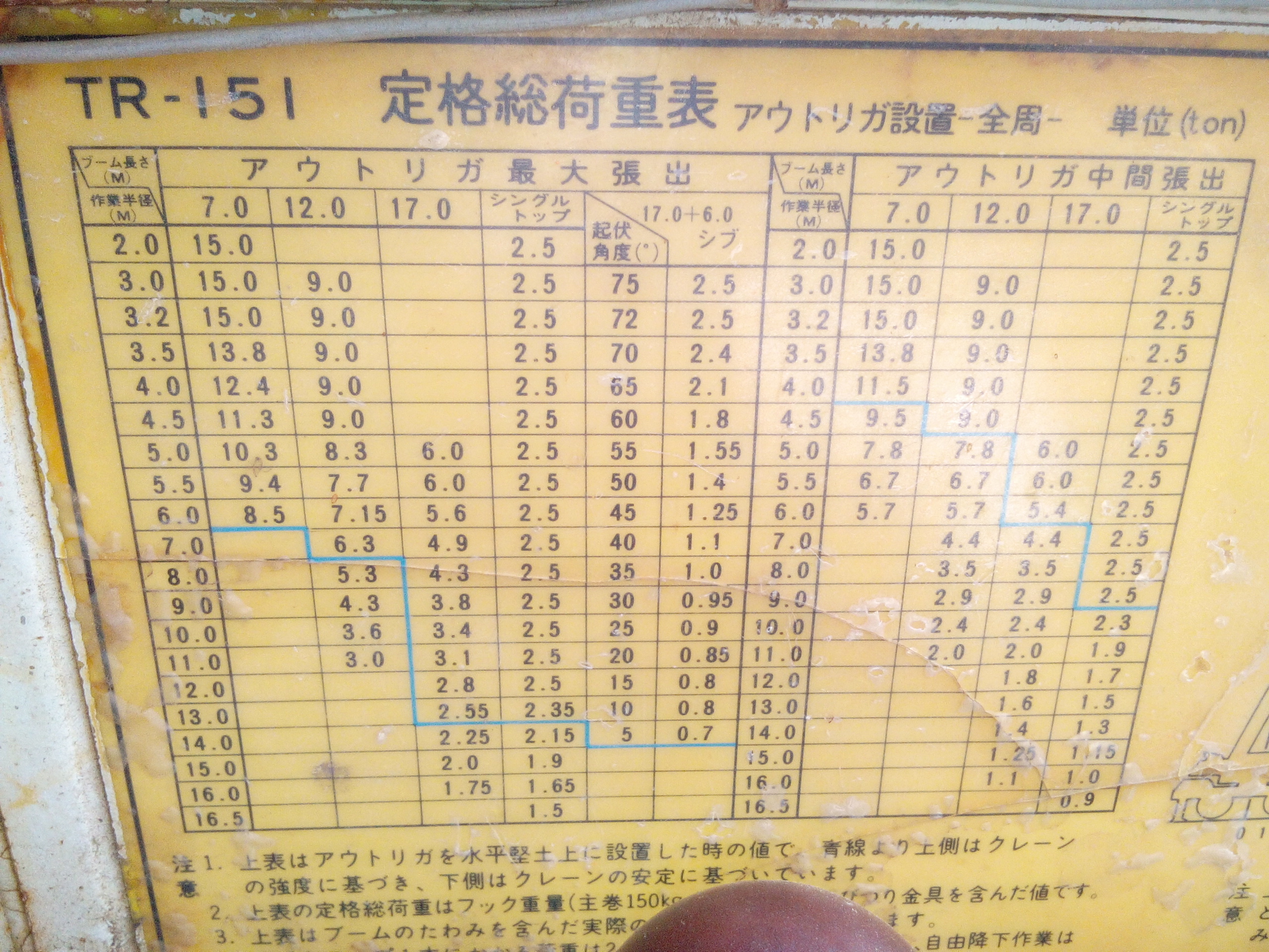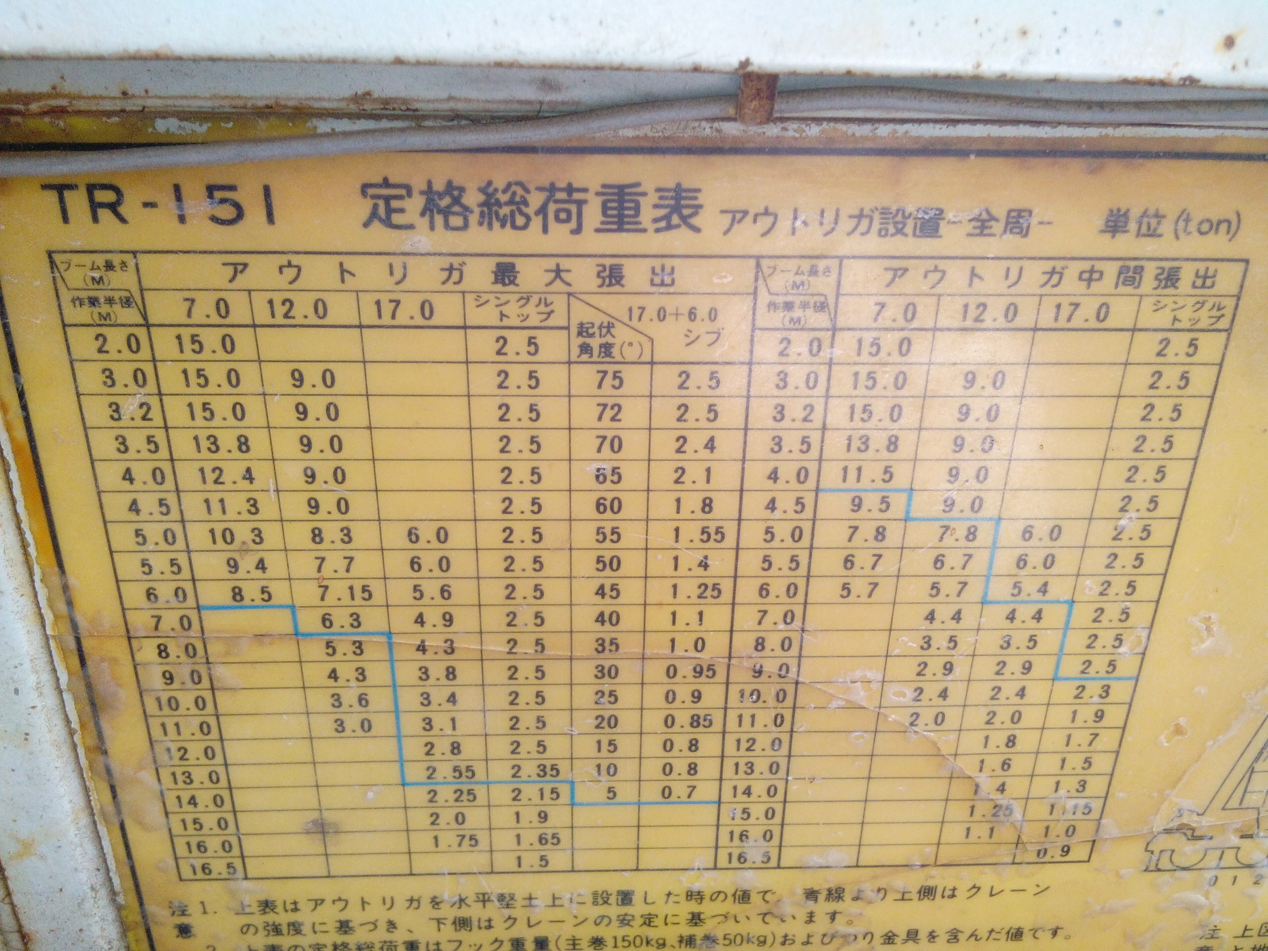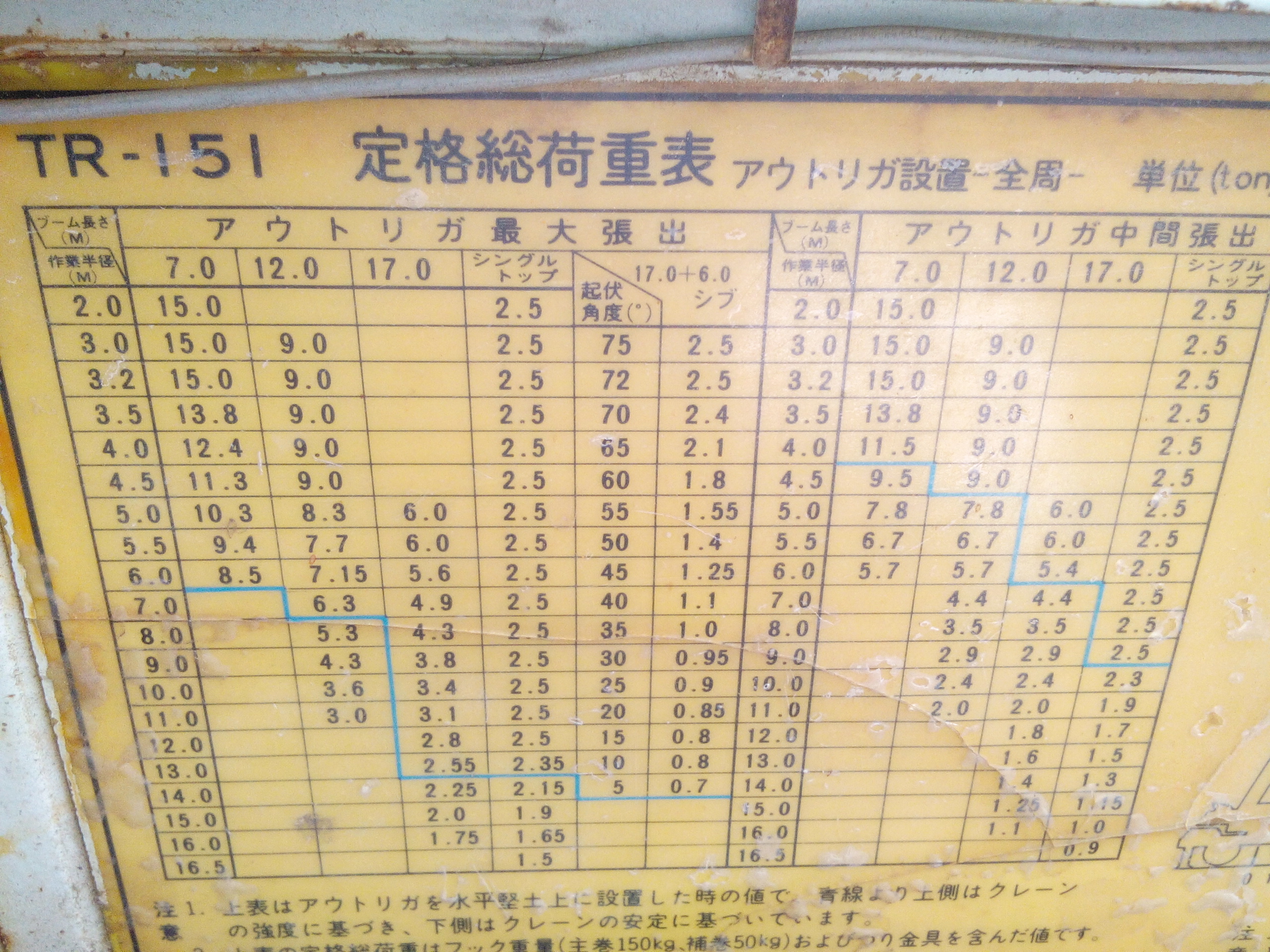 | 30 | TADANO | TR-150XL-4 | 15 | 78' | 12' | TR-150XL-4 |