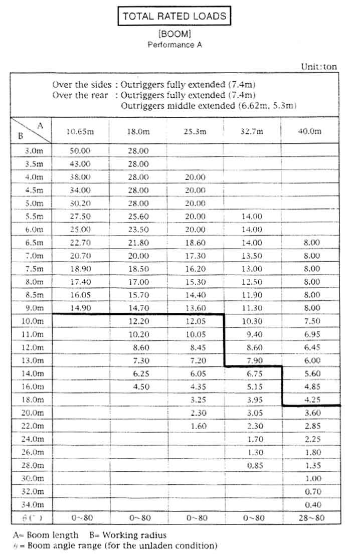 | 10 | TADANO | GR-800XL-1 | 80 | 144' | 58' | GR-800XL-1 |